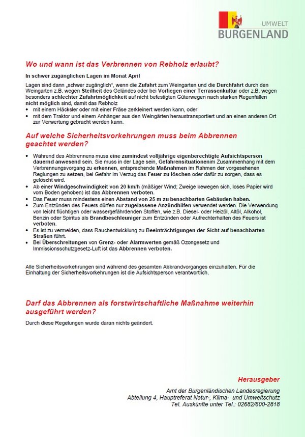 Verbrennen im Freien - Erhöhte Waldbrandgefahr auch im Burgenland