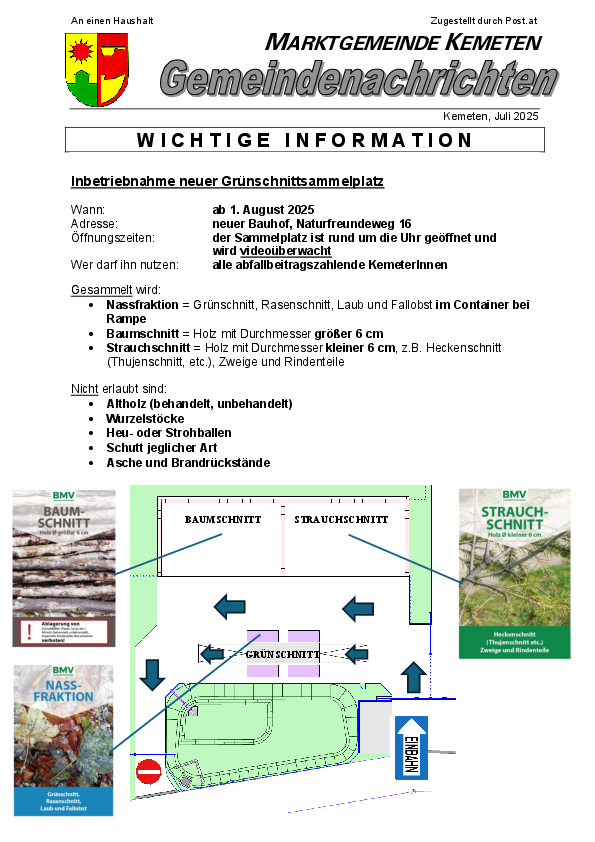 Mit der feierlichen Eröffnung des neuen Bauhofs zeigt Kemeten, wie zukunftsorientierte Gemeindepolitik aussieht. Auf über 680 m² Innen- und fast 4.000 m² Außenfläche wurde ein modernes Arbeitsumfeld für die Gemeindemitarbeiter geschaffen – inklusive Maschineneinstellhalle für alle Kommunalfahrzeuge, Waschplatz, Materiallager, Salzsilo und einem neuen, strukturierten Grünschnittplatz für die Bevölkerung. Auch eine Photovoltaikanlage zur Eigenstromversorgung wurde installiert. Bürgermeister Wolfgang Koller betonte in seiner Ansprache die Bedeutung dieser Infrastruktur für Effizienz, Versorgungssicherheit und Nachhaltigkeit.